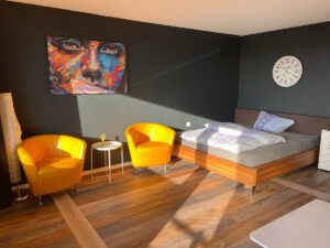 Willkommen im frisch renovierten Aurum Apartment am Brukerhaus – ein stilvoller, barrierearmer Rückzugsort in luftiger Lage. Genießen Sie den freien Blick vom Balkon auf den idyllischen Brukergarten, entspannen Sie am Pool oder in der Sauna und lassen Sie sich von Licht, Ruhe und modernem Komfort verzaubern.
